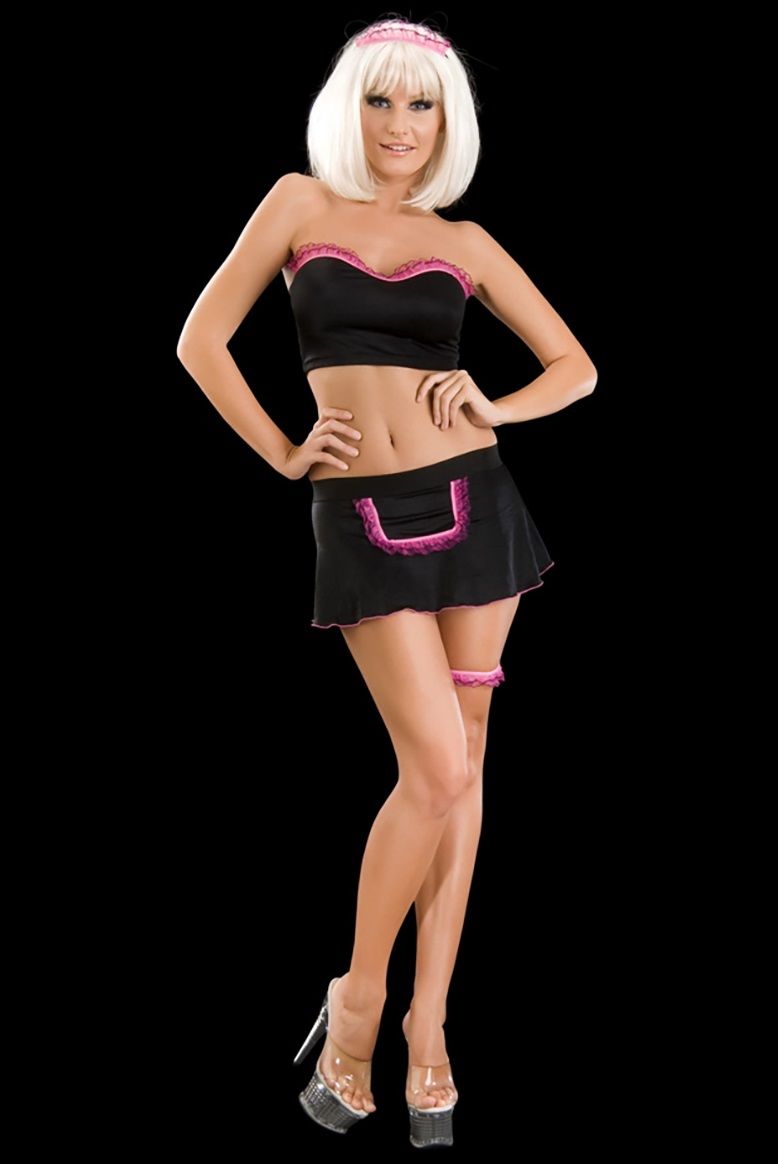 Женский костюм «Официантка». Состоит из 3 предметов: топа, юбки, ободка на голову. В комплекте: топ, юбка, ободок на голову. Подвязка не входит в комплект!