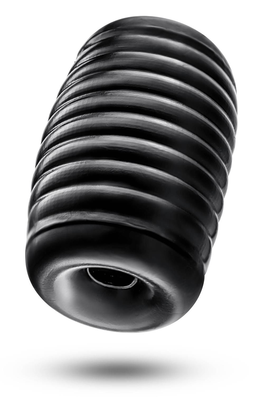 Черный мастурбатор Grasp. Сквозной, с ребрышками на поверхности.