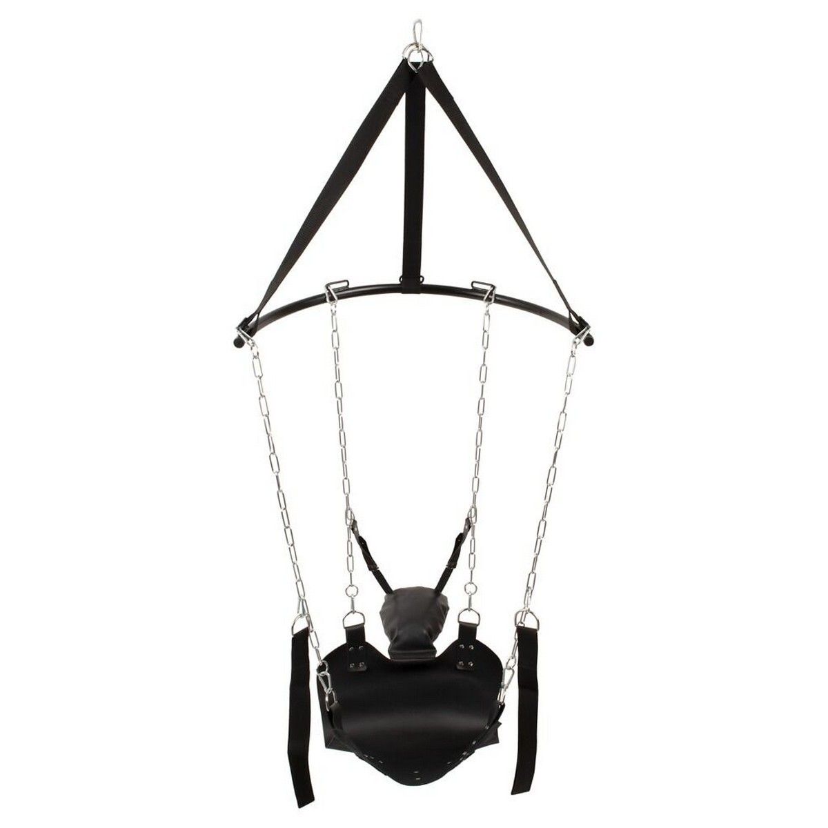 • Прочная конструкция: прочные цепи (каждая длиной 92 см) на полукольце толщиной 2,7 см, прочные ремни (каждый длиной 73 см) для крепления. • Лежак сделан из толстой кожи, имеет длину около 75 см, ширину 49 см и предлагает достаточно места для комфортной игры. • Мягкая подушка для головы: размер 32 см x 24 см, индивидуально регулируемый угол наклона для лежачего или сидячего положения. • Есть 2 петли для ног/рук: обеспечивают надежную фиксацию и могут по-разному прикрепляться к цепям с помощью карабина.