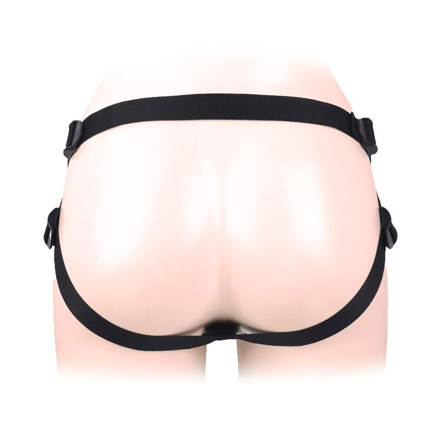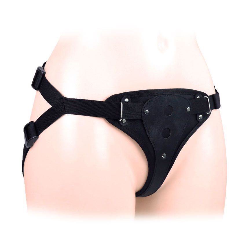 Женский пояс-трусики с 2 отверстиями для коннектора. Применяется в качестве страпона. К изделию прилагаются: коннектор и насадка в виде пениса с уплотнением в зоне головки. Интимный аксессуар имеет мягкую внутреннюю поверхность, предотвращающую натирание кожи. Благодаря наличию регулируемых ремней, пояс может использоваться людьми с различными параметрами. В комплекте: трусики, коннектор, насадка.